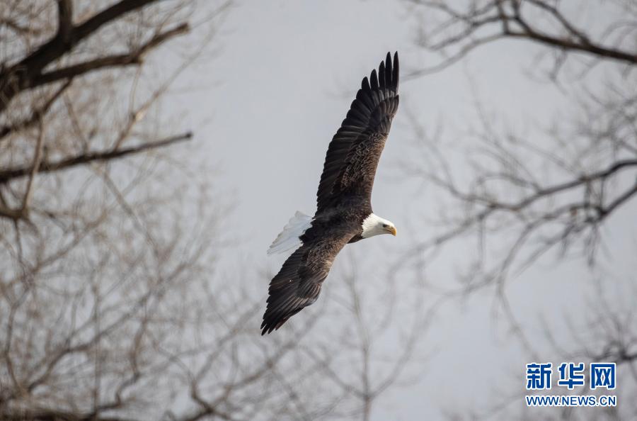 3月8日,一只白头海雕在美国伊利诺伊州罗克艾兰上空飞翔。