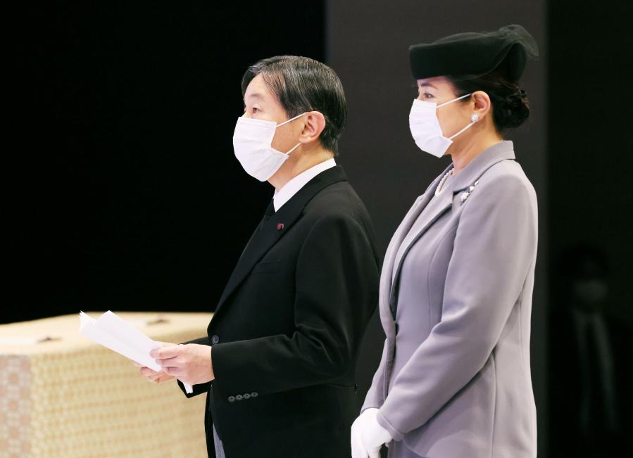 3月11日,日本天皇夫妇在东京出席“3·11”大地震10周年纪念仪式。新华社/共同社