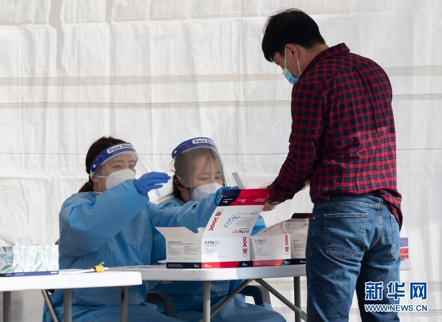 3月14日,医务人员在韩国京畿道华城市一新冠检测点协助居民进行检测。