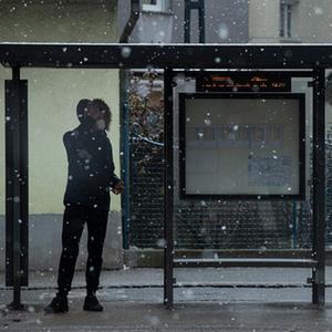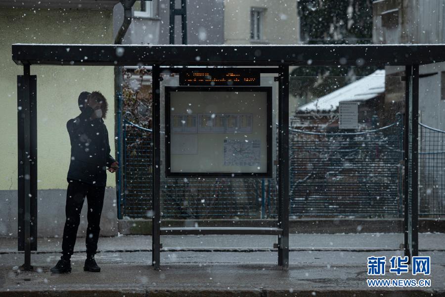 3月14日,一名戴口罩的男子在斯洛文尼亚首都卢布尔雅那等公交车。
