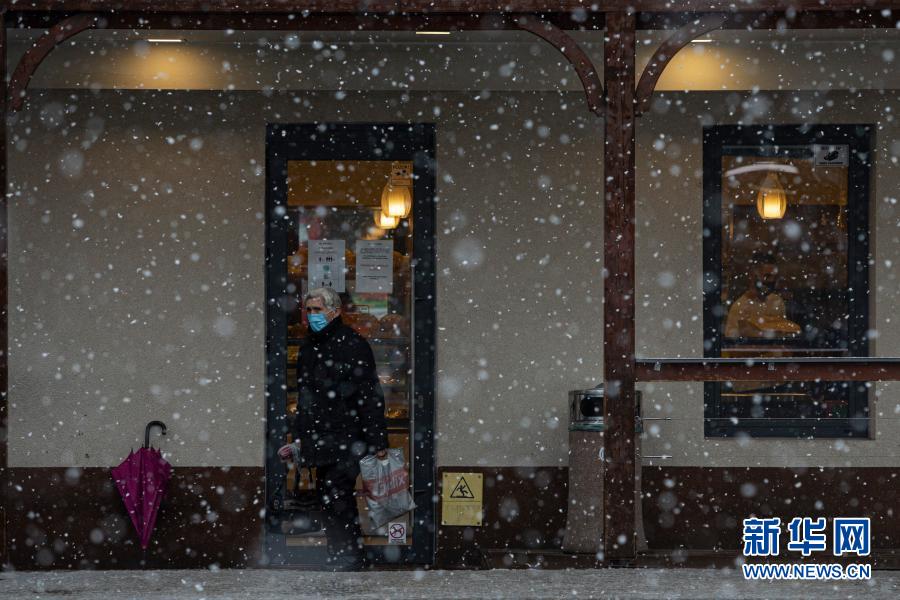 3月14日,一名戴口罩的男子走过斯洛文尼亚首都卢布尔雅那一家面包店。