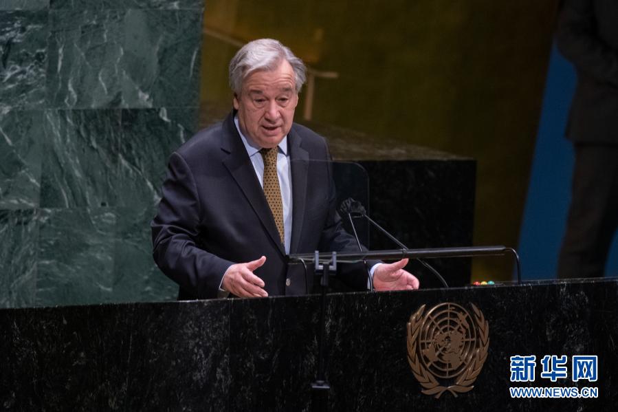 3月15日,联合国秘书长古特雷斯在纽约联合国总部举行的联合国妇女地位委员会第65届会议开幕式上致辞。