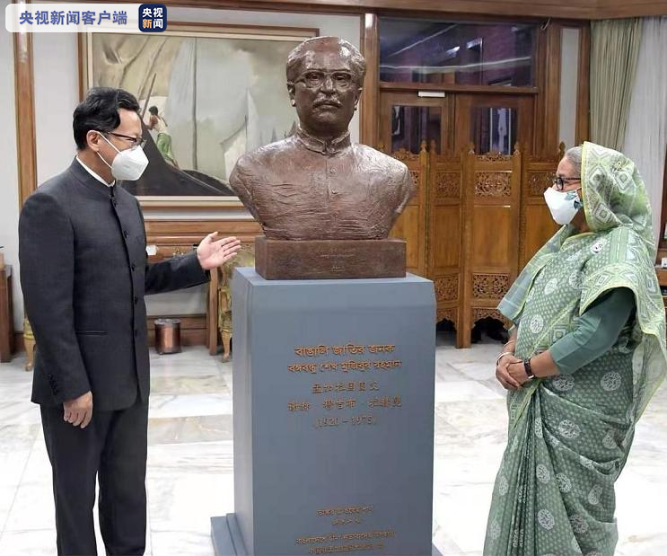 当地时间3月15日上午,中国驻孟加拉国大使李极明在孟加拉国总理官邸拜会总理谢赫·哈西娜,并赠送“孟加拉国国父谢赫·穆吉布·拉赫曼”的半身塑像。