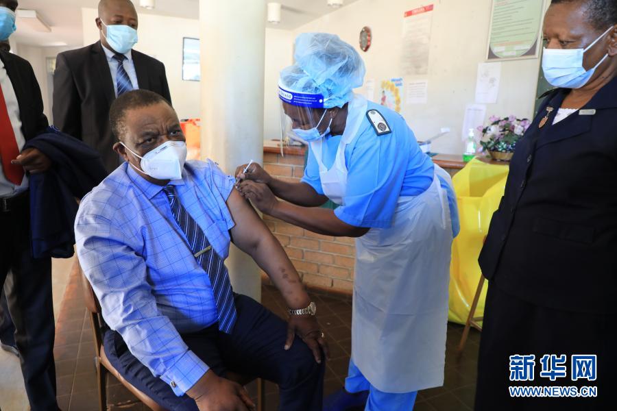新华社哈拉雷3月18日电(记者张玉亮)津巴布韦副总统兼卫生部长奇温加18日在首都哈拉雷的威尔金斯医院接种第二剂中国政府援助的国药集团新冠疫苗。