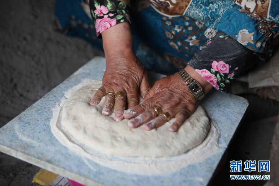 3月17日,70岁的卡兹兰·阿布·卡巴什在约旦河西岸城市希伯伦附近的一个村庄制作“塔本”烤饼。