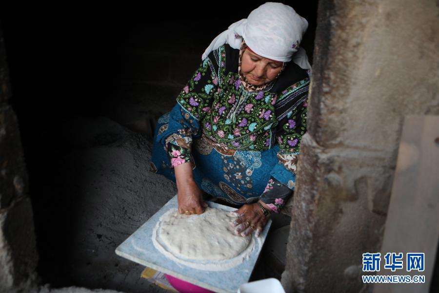 3月17日,70岁的卡兹兰·阿布·卡巴什在约旦河西岸城市希伯伦附近的一个村庄制作“塔本”烤饼。