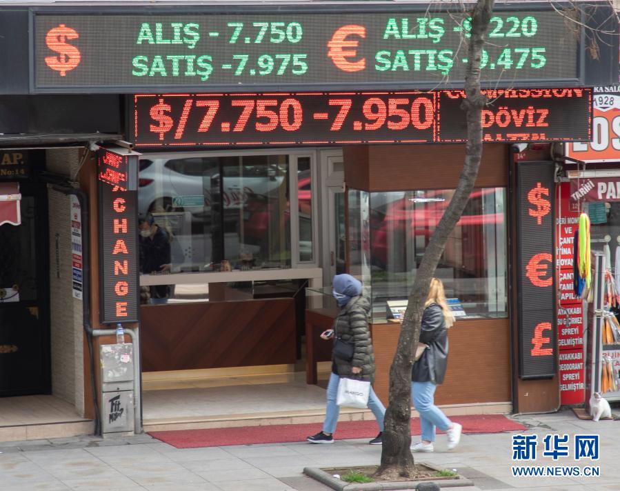 土耳其里拉对美元汇率22日开盘暴跌,跌幅一度超过15%,最低跌至1美元兑换8.485里拉,接近历史最低水平。新华社发(奥斯曼·厄尔萨尔摄)
