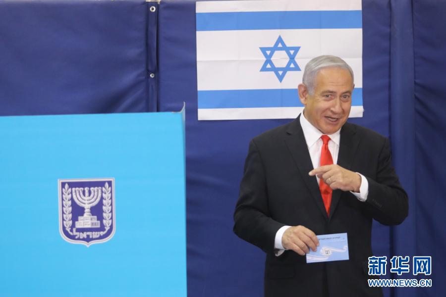 3月23日,以色列总理内塔尼亚胡在耶路撒冷的一个投票站参加投票。新华社/基尼图片社