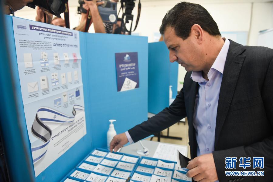 3月23日,以色列“联合名单”党领导人艾曼·奥达在耶路撒冷的一个投票站参加投票。新华社/基尼图片社