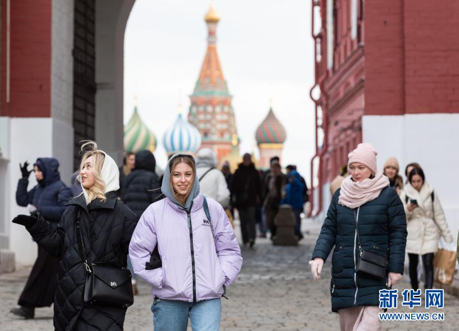 3月23日,在俄罗斯首都莫斯科,人们走在红场附近。