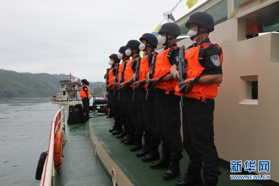 执法队员在云南西双版纳橄榄坝水域列队启航(3月23日摄)。新华社发(云南省公安厅供图)