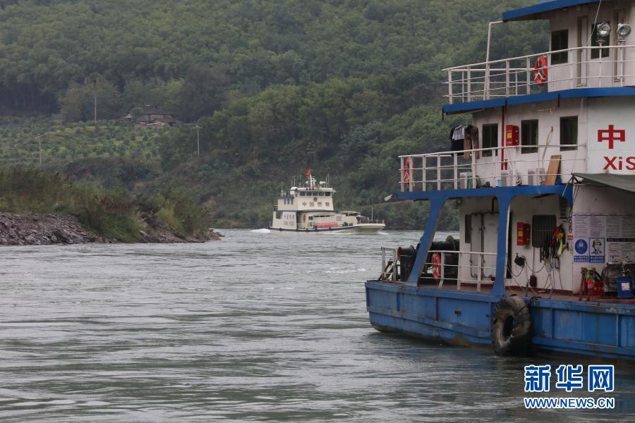 执法队员在云南西双版纳景哈码头向岸上人员敬礼(3月23日摄)。新华社发(云南省公安厅供图)
