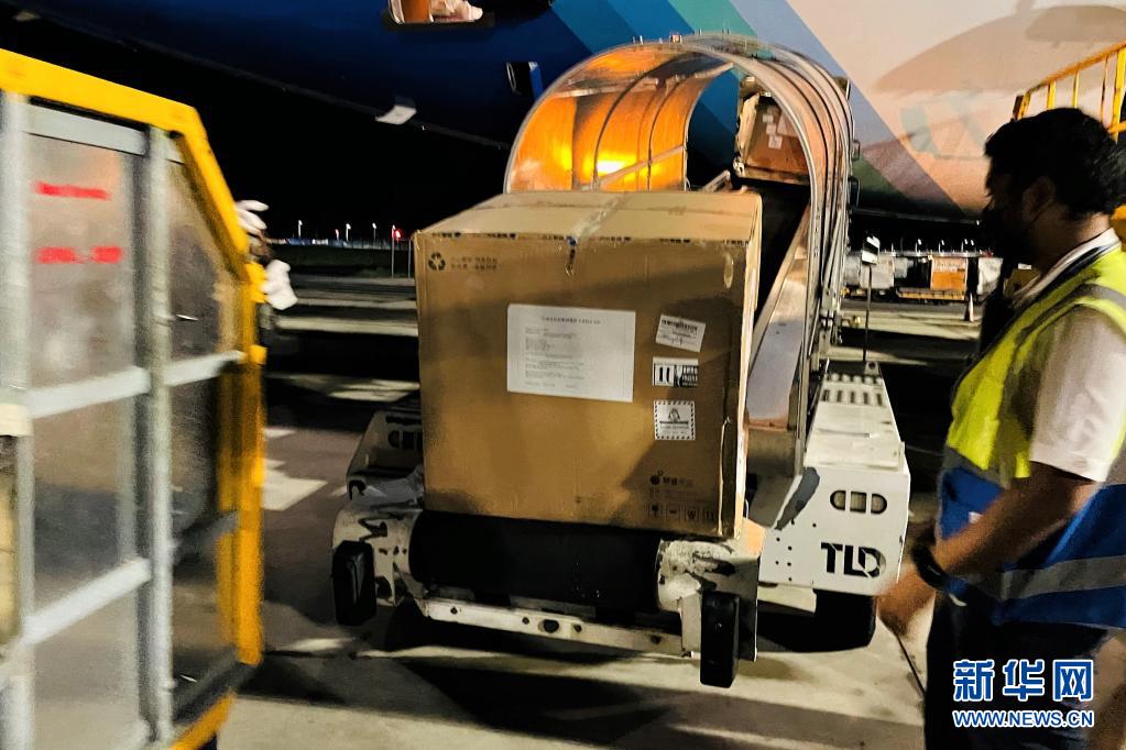 中国政府援助马尔代夫的首批新冠疫苗及部分防疫物资24日深夜运抵马累。新华社发(张凤摄)