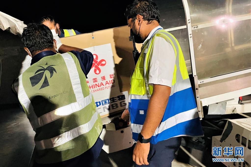中国政府援助马尔代夫的首批新冠疫苗及部分防疫物资24日深夜运抵马累。新华社发(张凤摄)