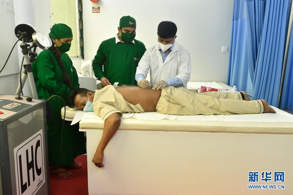 这是患者在孟加拉国首都达卡的“索西健康护理”中医诊所接受针灸治疗(3月13日摄)。