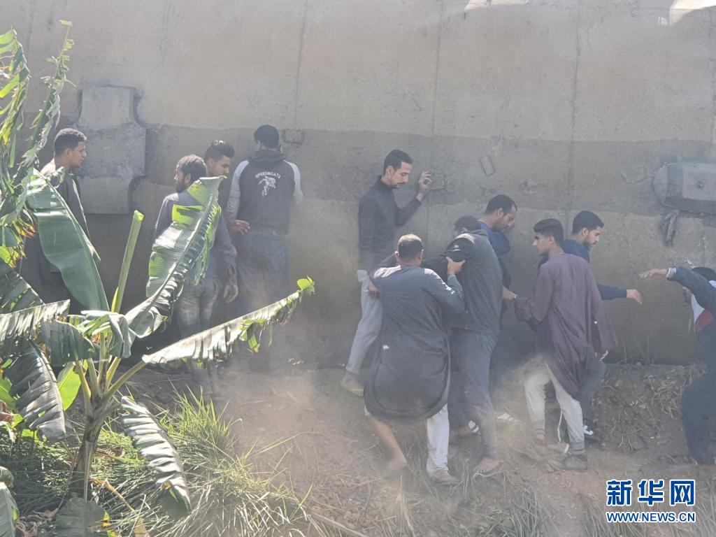 3月26日,人们聚集在埃及索哈杰省的火车相撞事故现场(手机照片)。新华社发(艾哈迈德·阿夫尤尼摄)