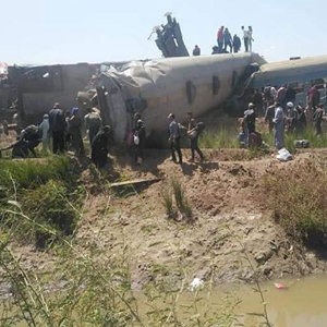 这是3月26日在埃及索哈杰省拍摄的火车相撞事故现场(手机照片)。新华社发(艾哈迈德·阿夫尤尼摄)