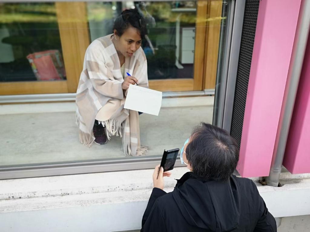 面对采访要求,BCI的工作人员拒不开门,只是隔着玻璃窗写了个网址让进行联络。(记者供图)