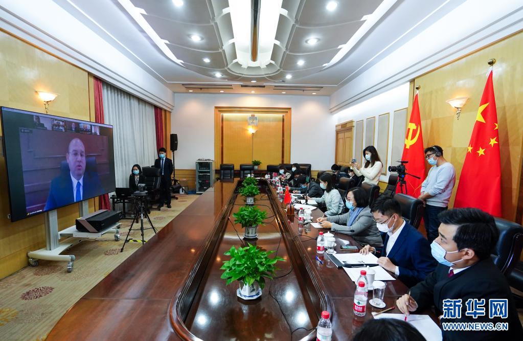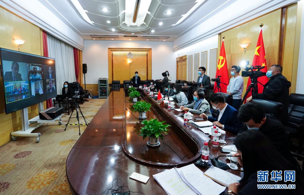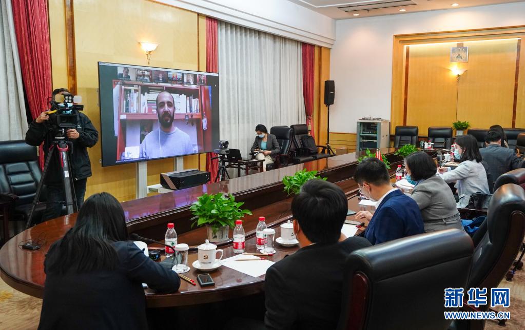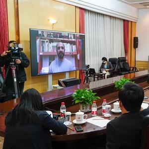 3月30日,记者在北京通过视频连线采访有关外宾。新华社记者 陈晔华 摄