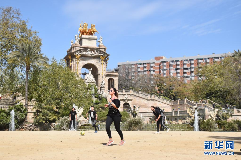 3月30日,人们在西班牙巴塞罗那城堡公园内锻炼。