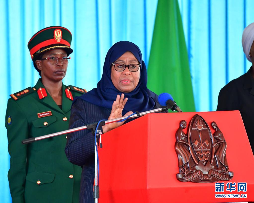 3月31日,坦桑尼亚总统哈桑(前)在首都多多马发表讲话,宣布改组内阁。新华社发(坦桑尼亚总统府供图)