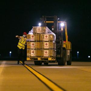 3月31日晚,中国政府和军队援助老挝的新冠疫苗运抵老挝万象瓦岱国际机场,这是中方第二批援老疫苗。中国驻老挝大使姜再冬在机场同老挝政府总理潘坎交接并先后致辞。