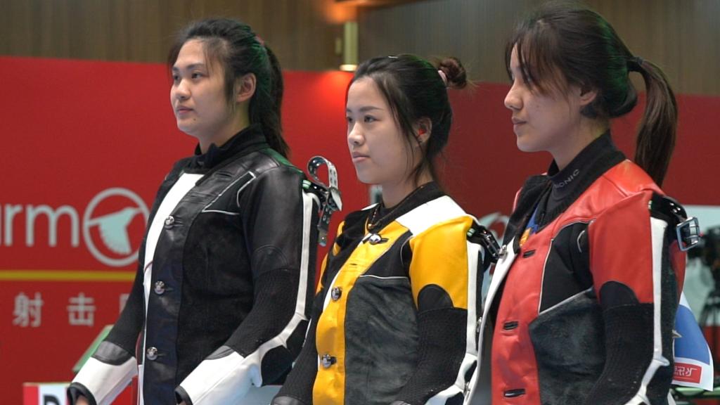 从左至右:女子气步枪选手张雨、杨倩、王璐瑶,她们都将第一次参加奥运会