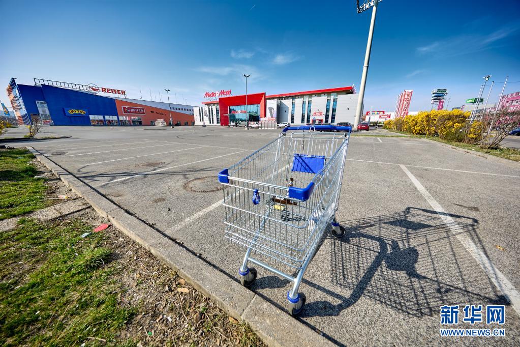 4月1日,在奥地利下奥地利州,一处大型电器商店的停车场空空荡荡。