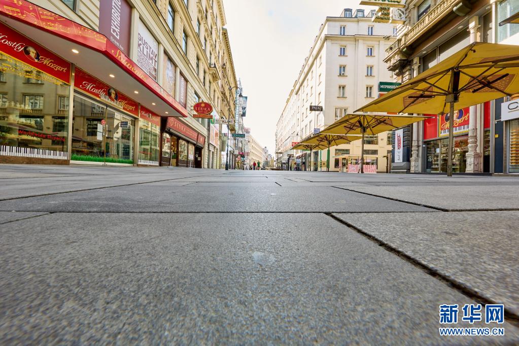 4月1日,在奥地利维也纳,一条街道两旁的店铺已经关闭。