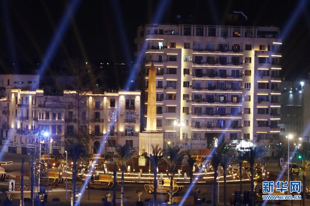 这是4月3日在埃及首都开罗拍摄的用于运送木乃伊的金色定制花车。埃及政府3日晚在开罗举办盛大游行活动和交接仪式,将现藏于埃及国家博物馆的22具古埃及法老和王后的木乃伊转移至埃及文明博物馆,以打造新的旅游热点。新华社发(艾哈迈德·戈马摄)