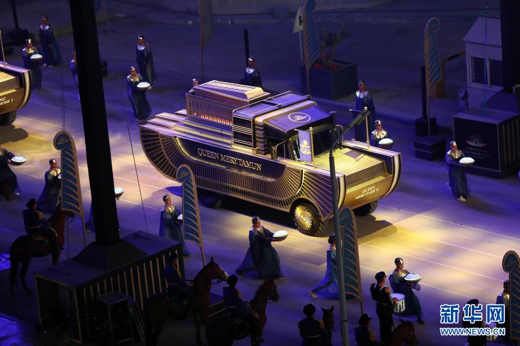 这是4月3日在埃及首都开罗拍摄的用于运送木乃伊的金色定制花车。埃及政府3日晚在开罗举办盛大游行活动和交接仪式,将现藏于埃及国家博物馆的22具古埃及法老和王后的木乃伊转移至埃及文明博物馆,以打造新的旅游热点。新华社发(艾哈迈德·戈马摄)