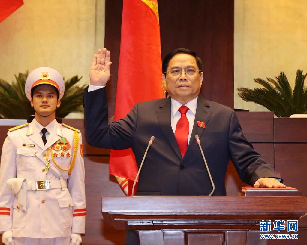 4月5日,新当选的越南政府总理范明政在首都河内宣誓就职。越南第十四届国会第十一次会议5日选举范明政为新一任政府总理。新华社/越通社