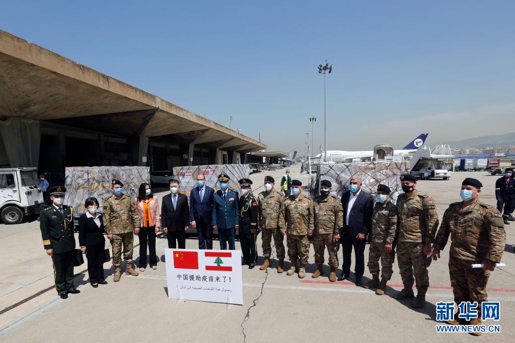 中国向黎巴嫩政府和军队援助的两批新冠疫苗6日运抵贝鲁特拉菲克·哈里里国际机场。