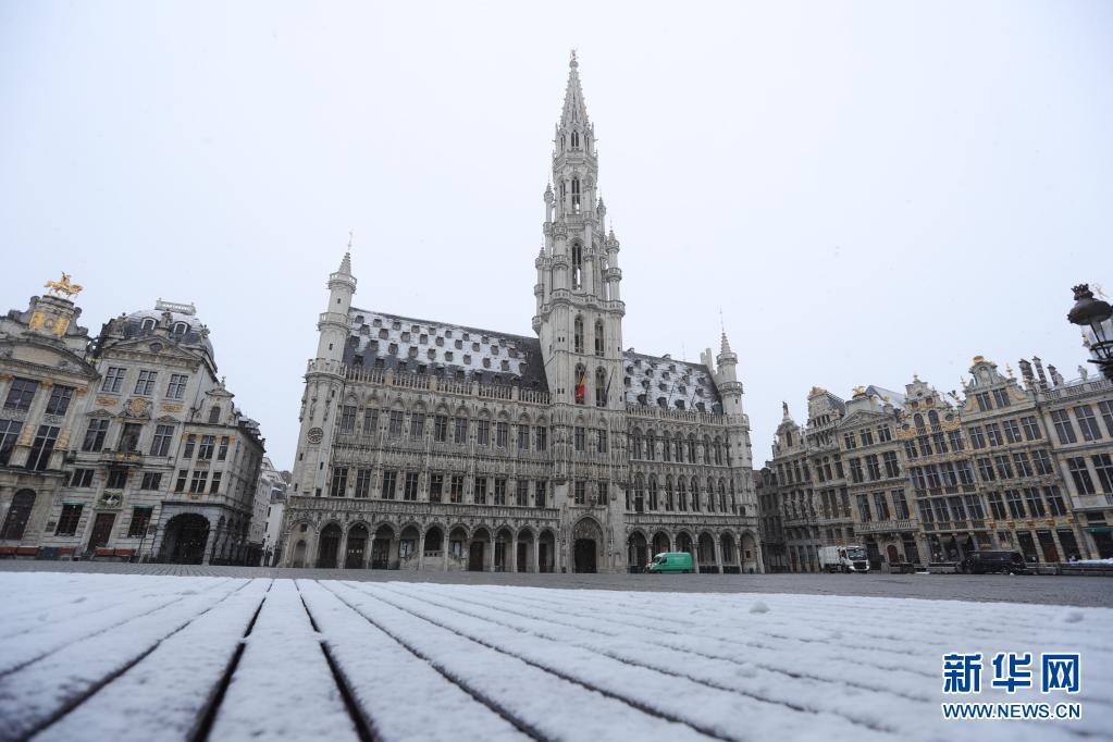 比利时近日迎来春雪,首都布鲁塞尔银装素裹,景色别致。