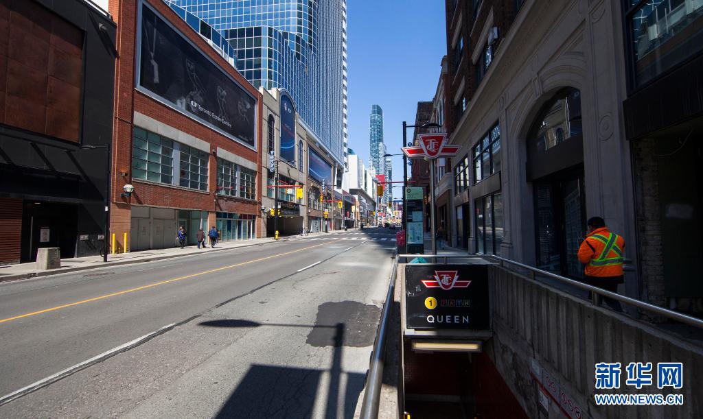 这是在加拿大安大略省多伦多拍摄的市中心街头(4月8日摄)。