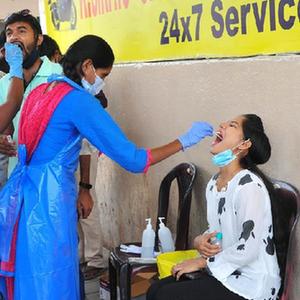 4月11日,一名女子在印度班加罗尔的一个公交站接受新冠病毒检测取样。新华社发