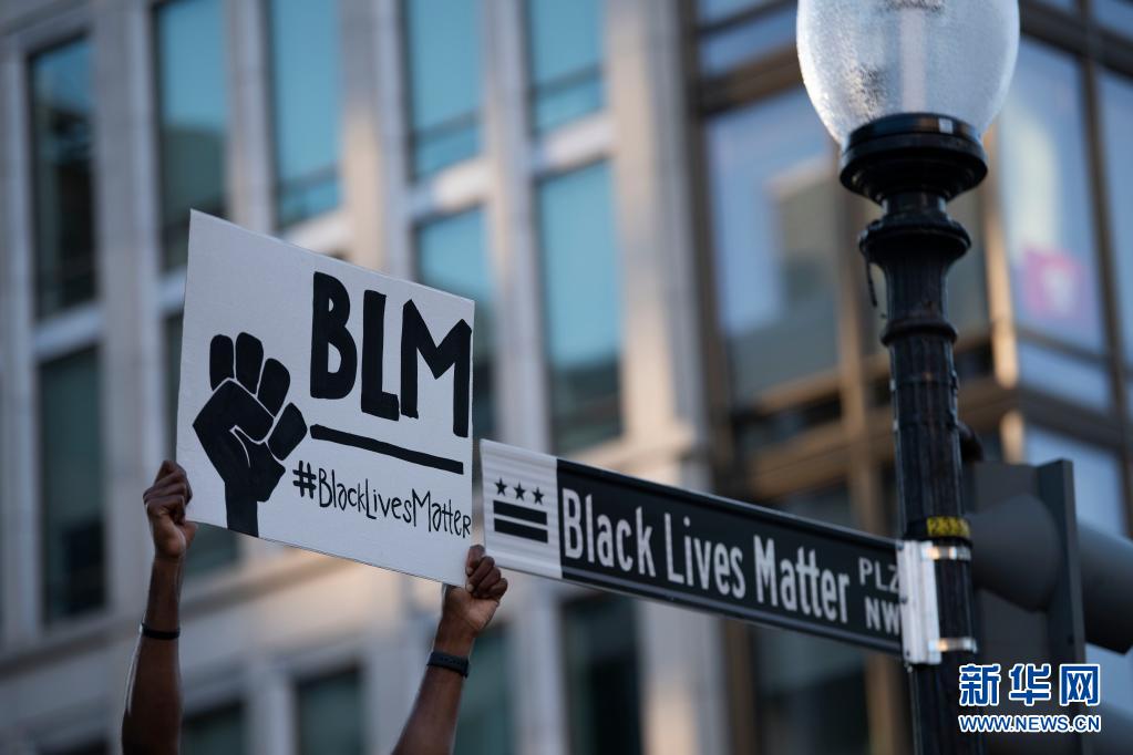 2020年6月8日,一名示威者在美国华盛顿白宫附近高举“黑人的命也是命”的标语。