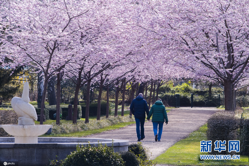 当地时间4月14日,德国基尔,当地樱花盛开,美如画卷。(图片来源:东方IC)