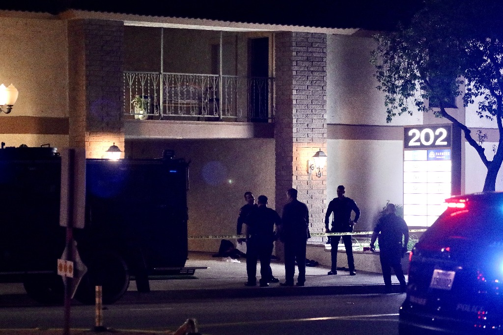 3月31日,警方在美国加利福尼亚州南部奥兰治县奥兰治市枪击案现场工作。美国警方当天说,奥兰治市当天傍晚发生一起枪击案,造成包括一名儿童在内的至少4人死亡,另有2人受伤。(新华社发)