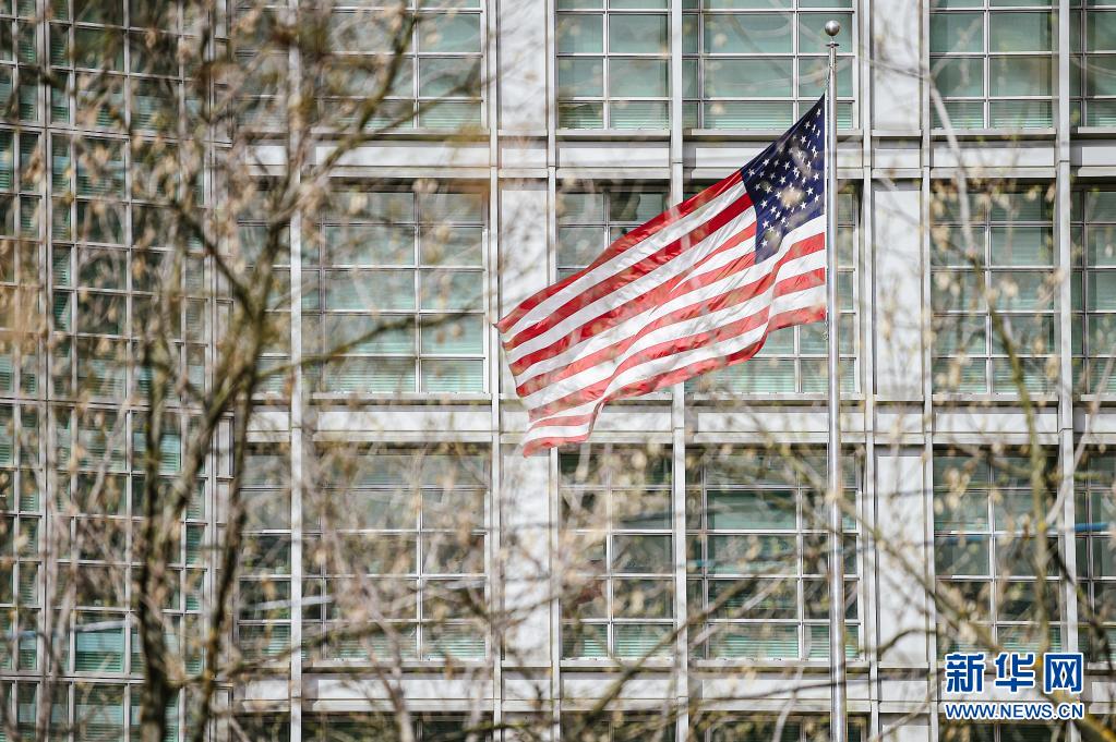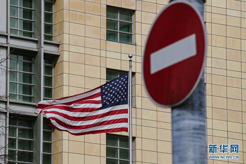 这是4月16日在俄罗斯首都莫斯科拍摄的美国驻俄罗斯大使馆。新华社发(叶甫盖尼·西尼岑 摄)