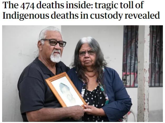 1991年4月15日,澳大利亚皇家委员会提交了有关土著人在羁押期间死亡的调查报告。报告称,土著人在押期间的死亡问题已成为该国执法系统一大病症。然而三十年过去了,一切还是老样子。