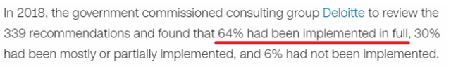 该委员会调查了80年代死亡的99名土著人的生活,发现他们都生活在“社会的边缘”,他们的健康状况从“贫穷到非常糟糕”不等,他们的经济状况是“灾难性的”。委员会为此提出339项建议,力求改善土著人境遇,减少他们在拘留期间的死亡人数。遗憾的是,截至2018年的相关调查,这些建议只有六成得到完整实施。