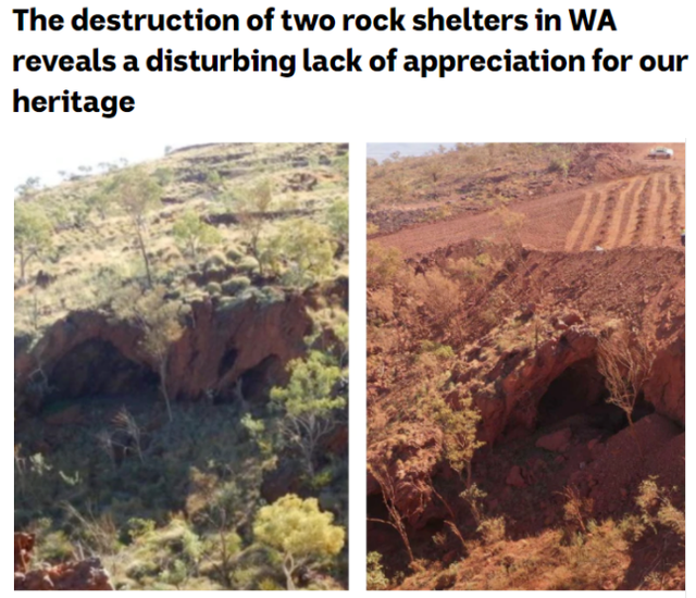 去年,全球三大铁矿业巨头之一的澳大利亚力拓集团摧毁了西澳州一处有着4.6万年人类居住历史的土著人历史遗址,这些遗址曾是全球人类居住的最古老证据之一。