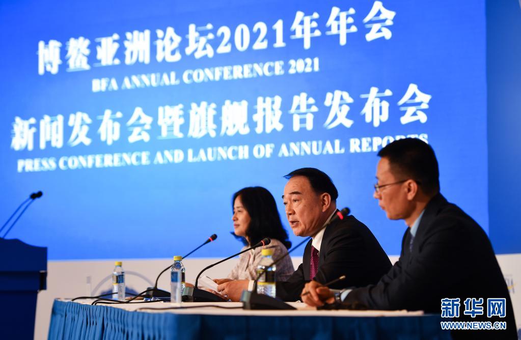 4月18日,博鳌亚洲论坛秘书长李保东(右二)在新闻发布会上讲话。