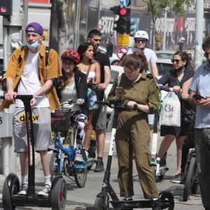 4月18日,人们在以色列中部城市特拉维夫街头出行。