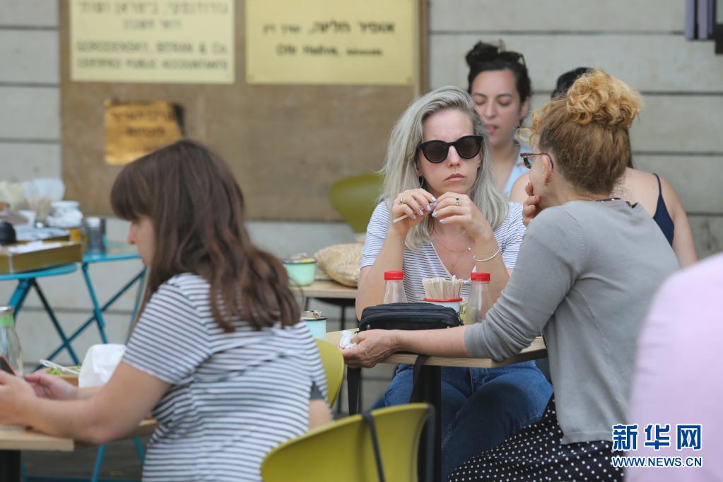 4月18日,人们在以色列中部城市特拉维夫户外用餐。