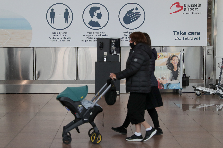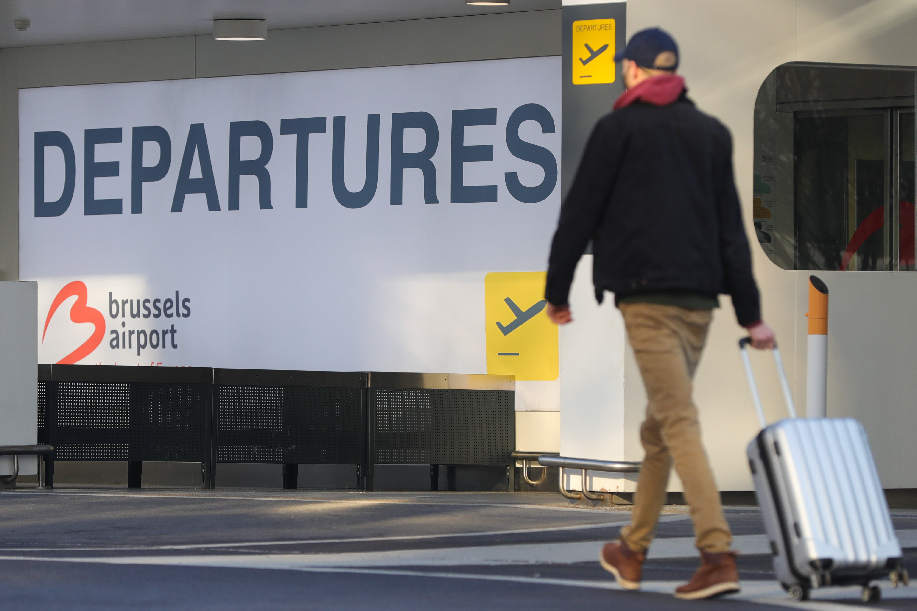 ↑4月19日,一名旅客走进比利时布鲁塞尔市郊的扎芬特姆机场出发厅。