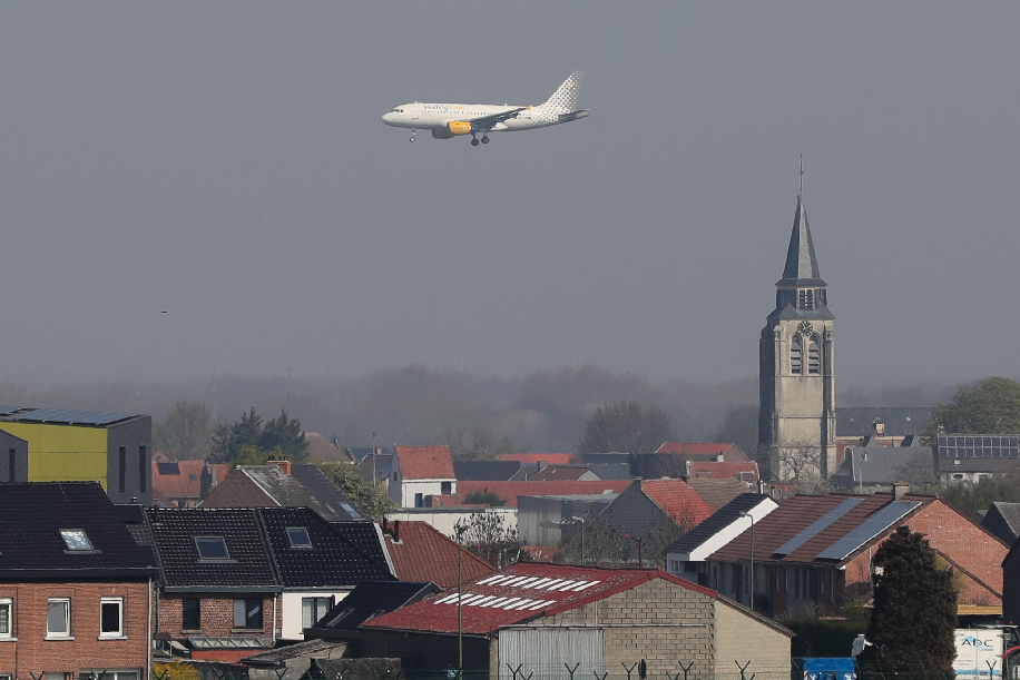 ↑4月19日,西班牙布埃林航空的一架航班准备在比利时布鲁塞尔市郊的扎芬特姆机场降落。