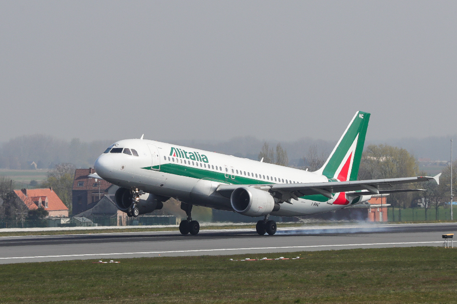 ↑4月19日,意大利航空的一架航班抵达比利时布鲁塞尔市郊的扎芬特姆机场。