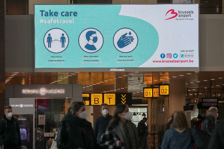 ↑4月19日,旅客走在比利时布鲁塞尔市郊的扎芬特姆机场出发大厅。